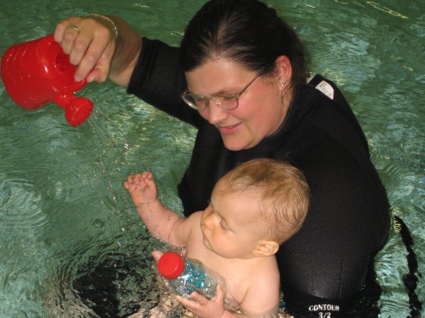 Spielerische Wassergewöhnung von Anfang an. Beim Wasserspiel für Babys und